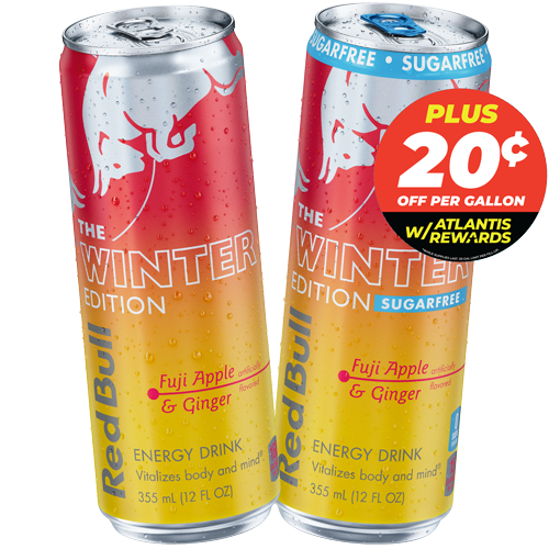 Try the NEW Red Bull Winter Edition: Fuji Apple & Ginger at Atlantis. Get this limited edition flavor before it’s gone.