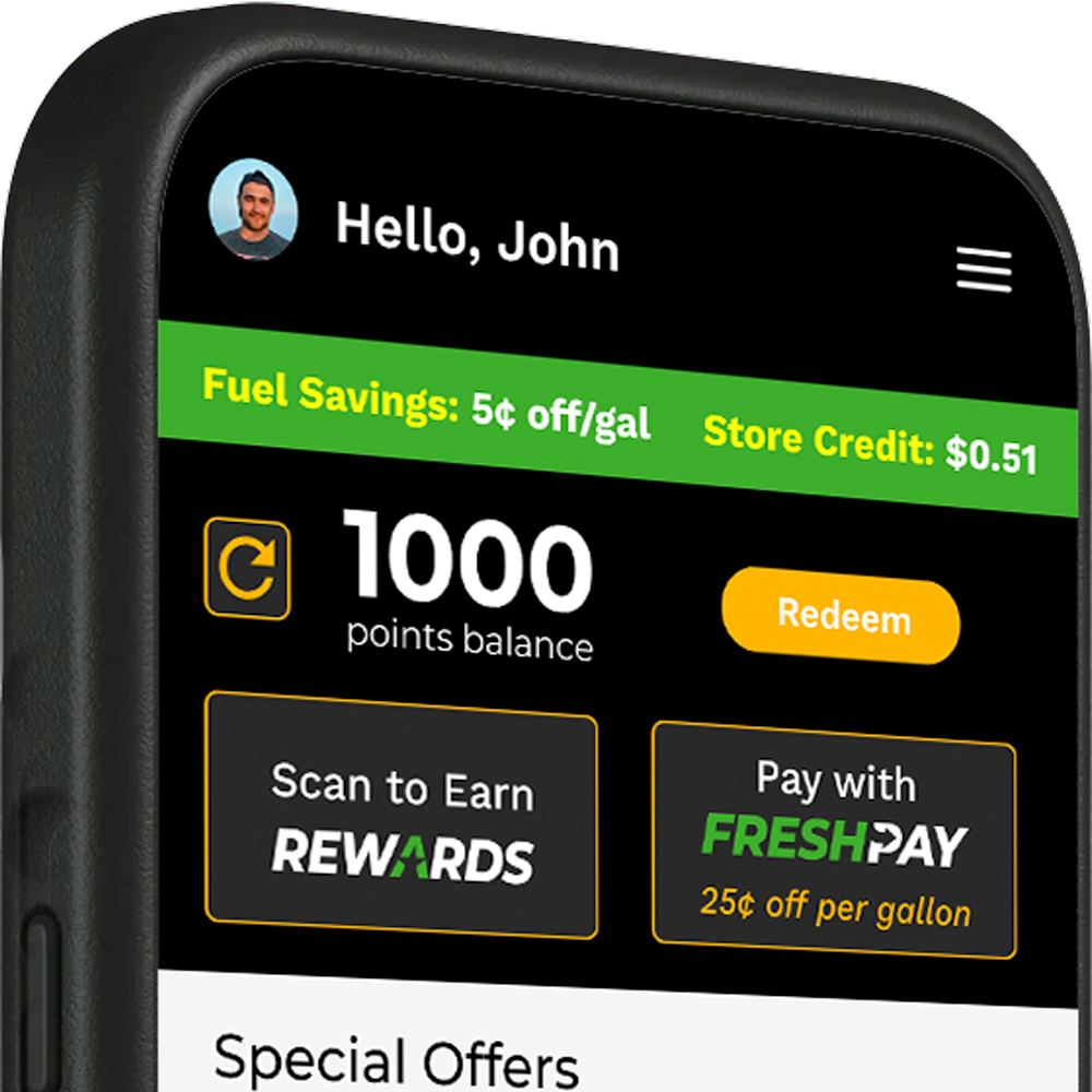 FRESHPAY is an upgrade to Atlantis Rewards that lets you pay with your phone or your Atlantis Rewards card. Simply link your Atlantis Rewards account to your checking account and start saving today. Plus, earn an extra 10¢ off per gallon when you use FRESHPAY at the pump.